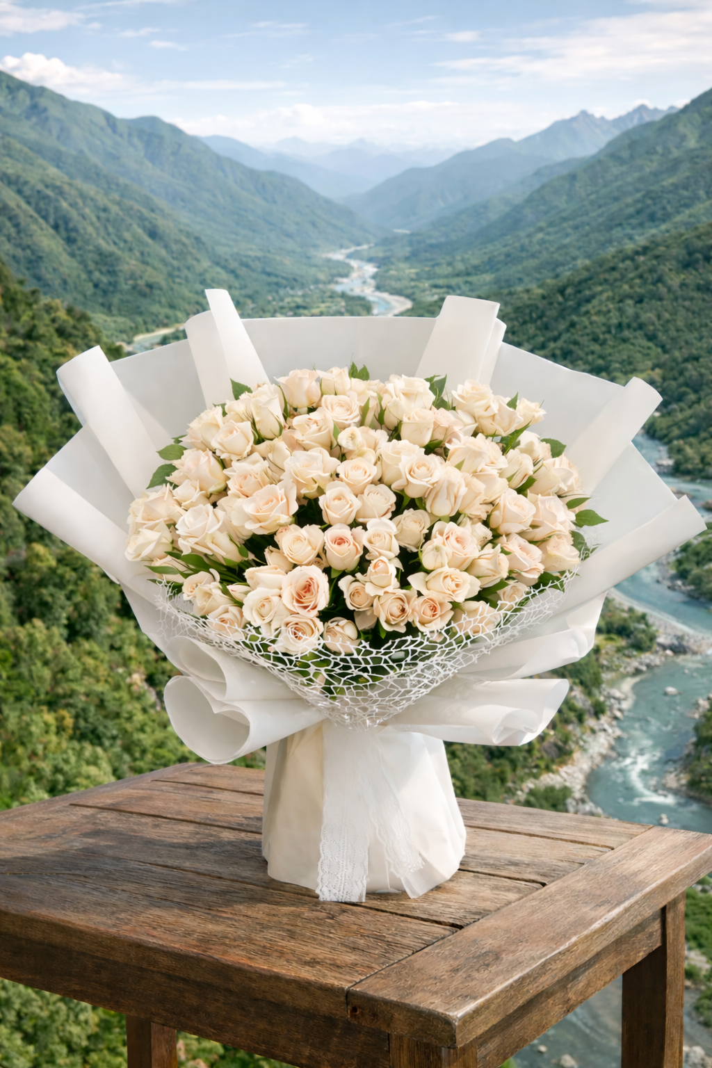 باقة النقاء الملكي صُمّمت بعناية لتجسّد الأناقة الهادئة والجمال الطبيعي الخالص.