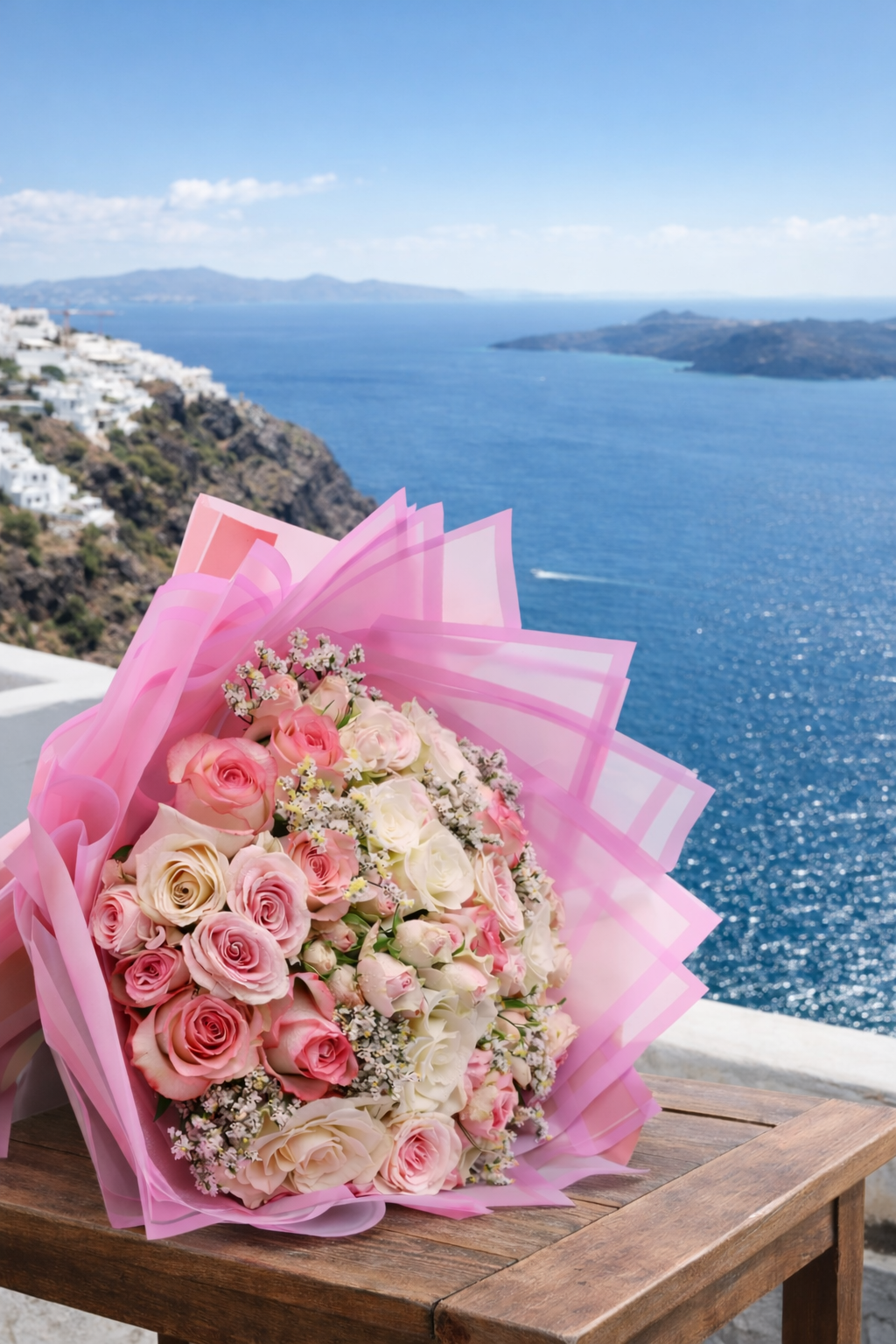 باقة أنثوية راقية تعكس الهدوء والرومانسية، بتدرجات وردية ناعمة ولمسات بيضاء أنيقة. تصميم متوازن يبرز جمال الورود الطبيعية ويمنح إحساسًا دافئًا مناسبًا لأجمل اللحظات. اختيار مثالي لمن يقدّر الذوق الهادئ والفخامة غير المتكلفة.