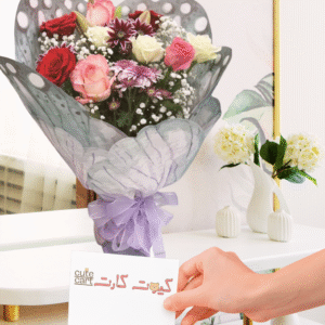 باقة راقية تجمع بين الورود الطبيعية المتنوعة بألوان نابضة بالحياة، منسقة بعناية وتغليف أنيق يعكس الفخامة والذوق العالي.